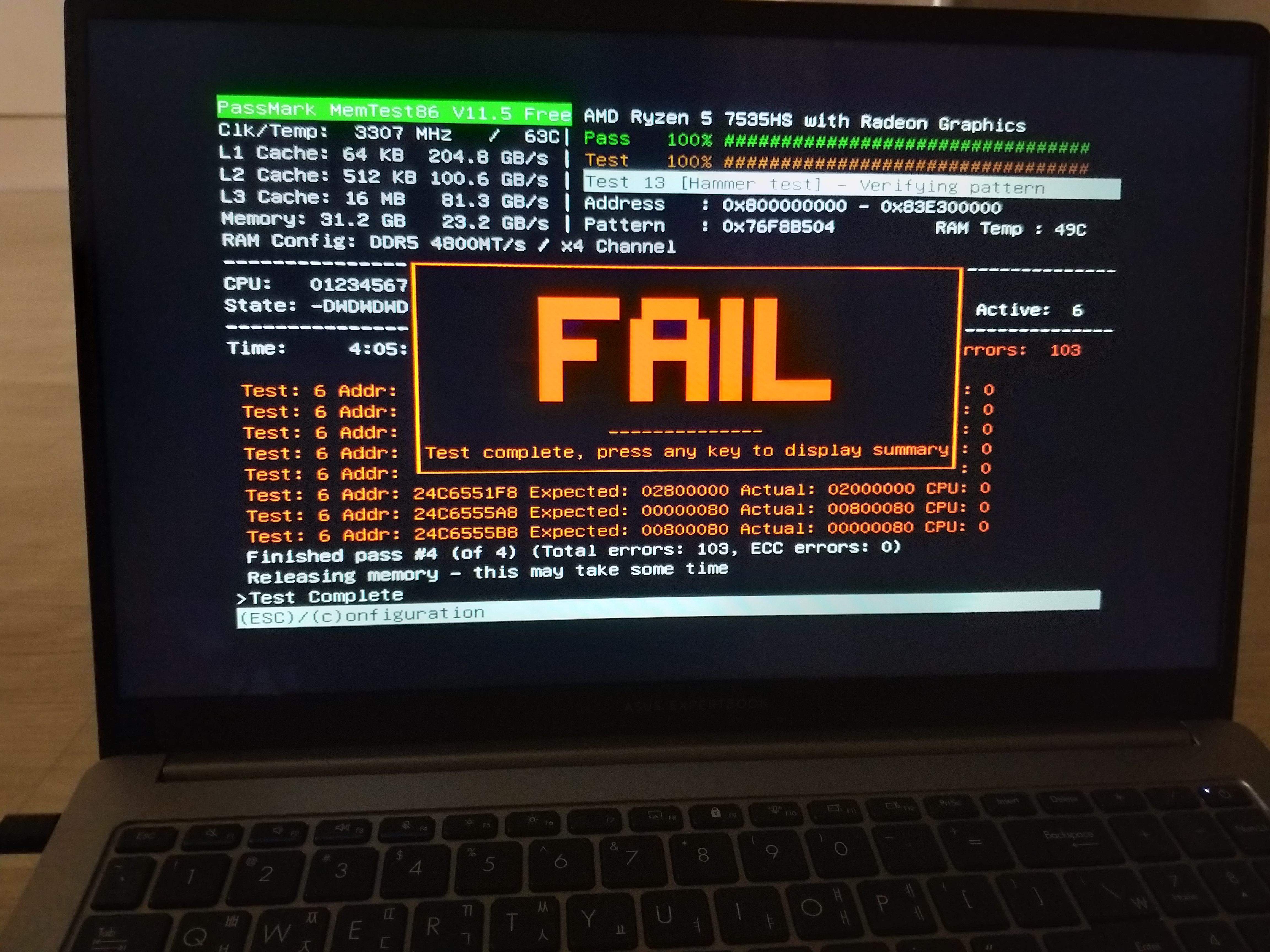 These days, brands like ASUS, Lenovo, and MSI are selling budget laptops, and in some cases the sellers upgrade the memory before selling them. But you have to be careful with that memory. What they often do is just buy the modules and assemble their own finished memory sticks. That’s why I think it’s essential to run MemTest86. This is a separate issue from the laptop manufacturers themselves, since they usually claim it’s not their responsibility. In the end, if you buy a cheap laptop, you have to put in the effort yourself.