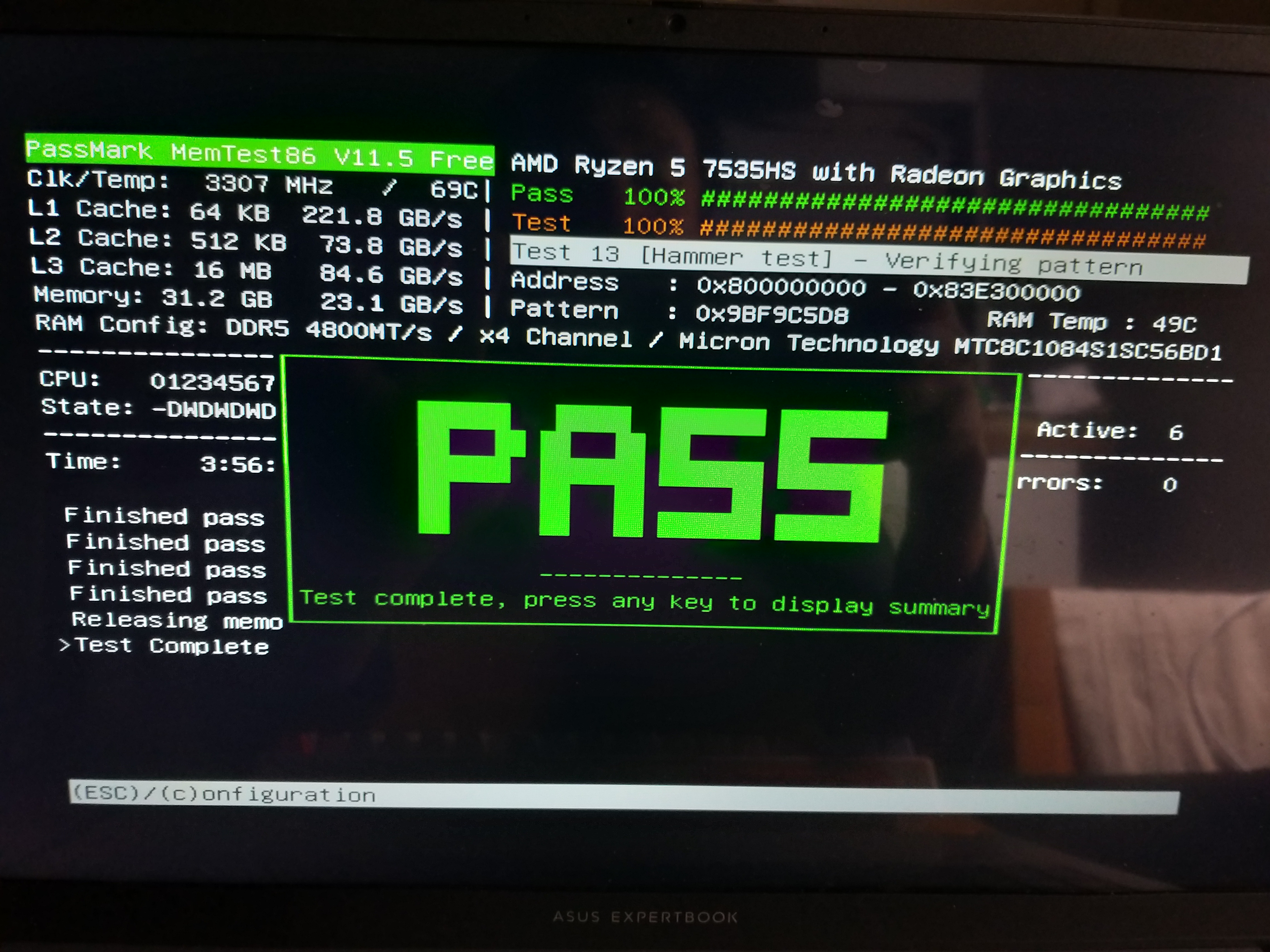 Eventually, I had the memory replaced by the shop where I bought it. After nervously running the test again for four hours, I was relieved to finally see a success message like the one below.